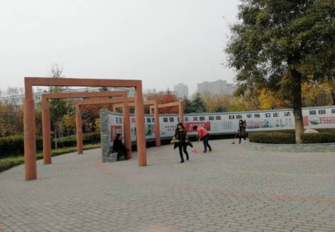 当天下午志愿者们准时到达清扫地点,按照事先划分好的清扫区域分组,认真打扫道路和花坛卫生,并仔细检查草坪卫生,将“不文明”装进垃圾桶内,将文明留在校园里。