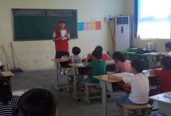 在实践过程中,志愿者通过趣味教学的方法,将安全逃生、古诗、英语等知识分享给小朋友们,小朋友学习的热情高涨并积极回答问题。完成教学任务后,志愿者们带着小朋友们唱歌、背诗、做游戏,现场气氛融洽,时不时传来欢快的笑声。