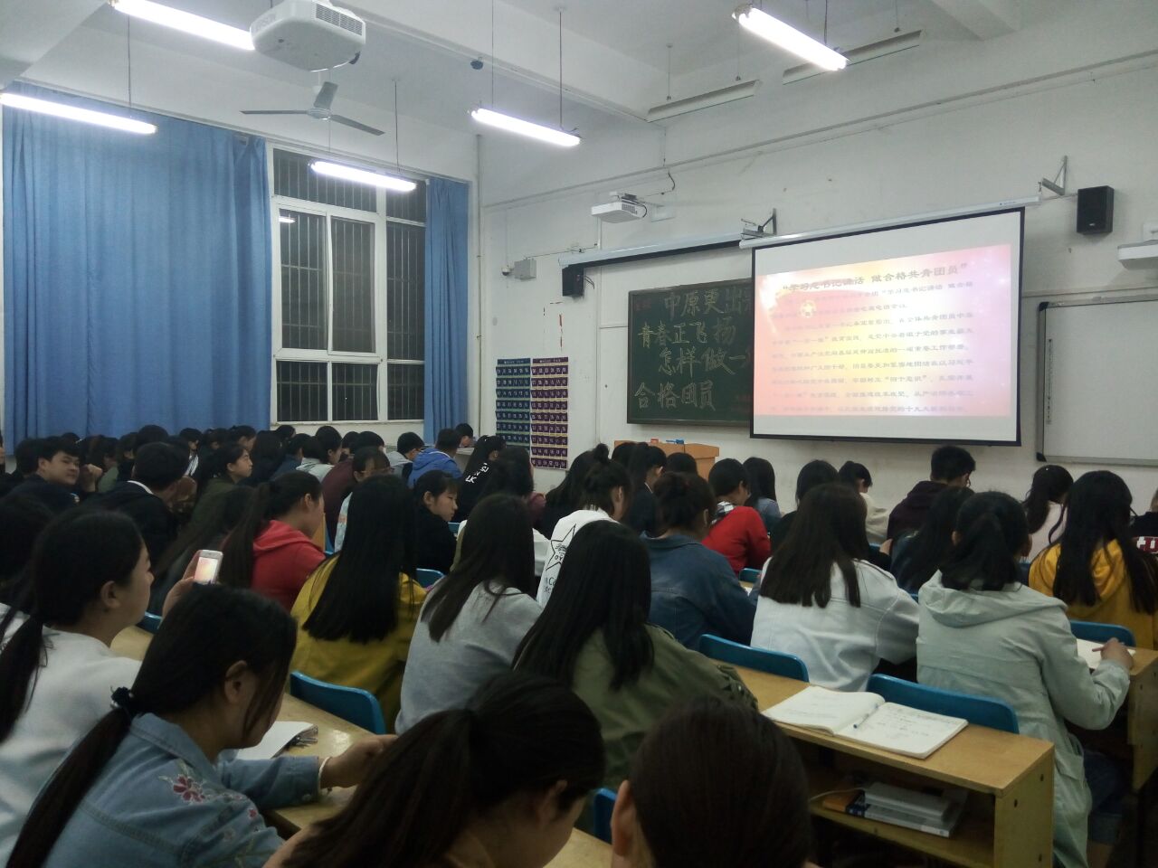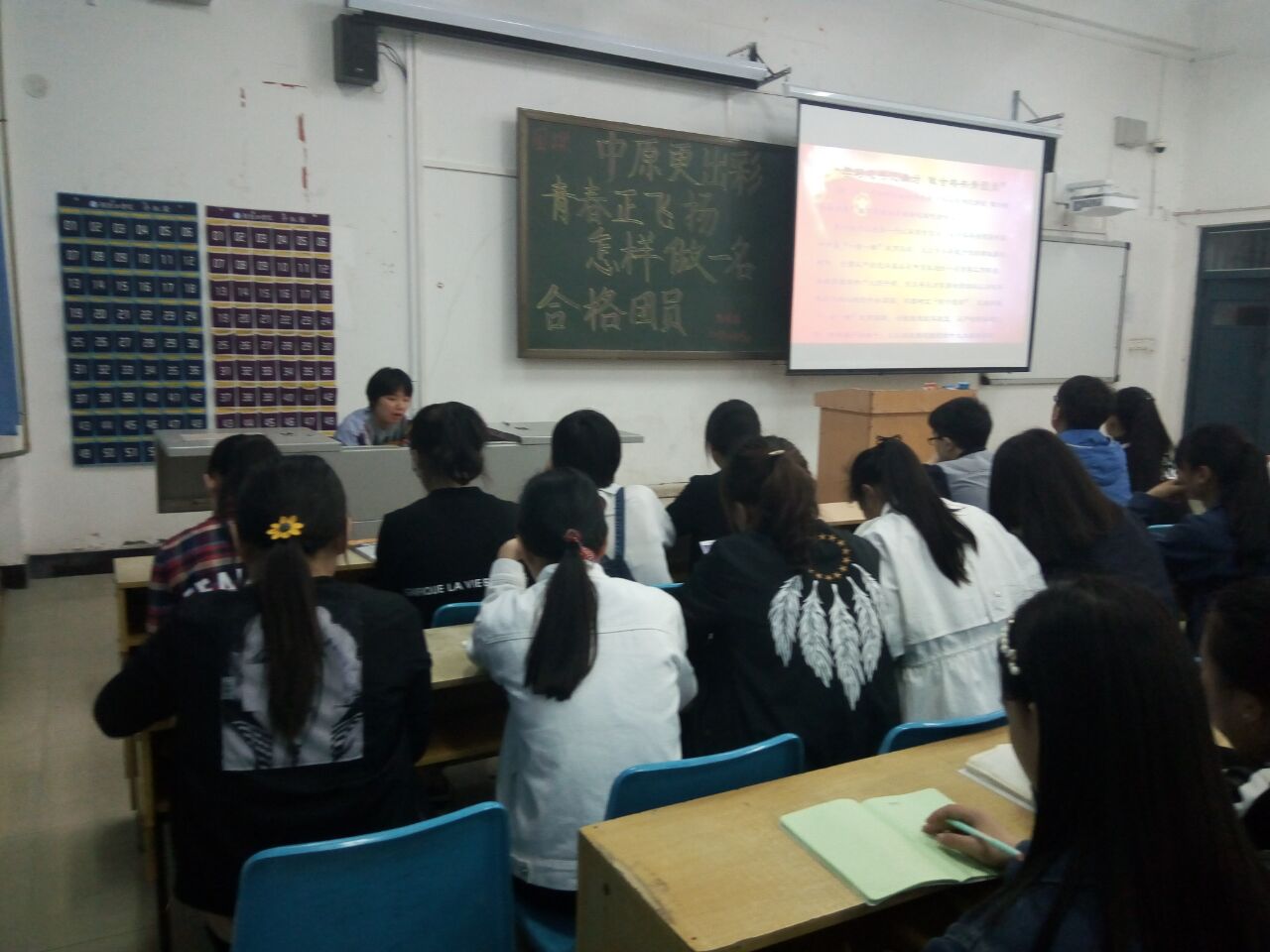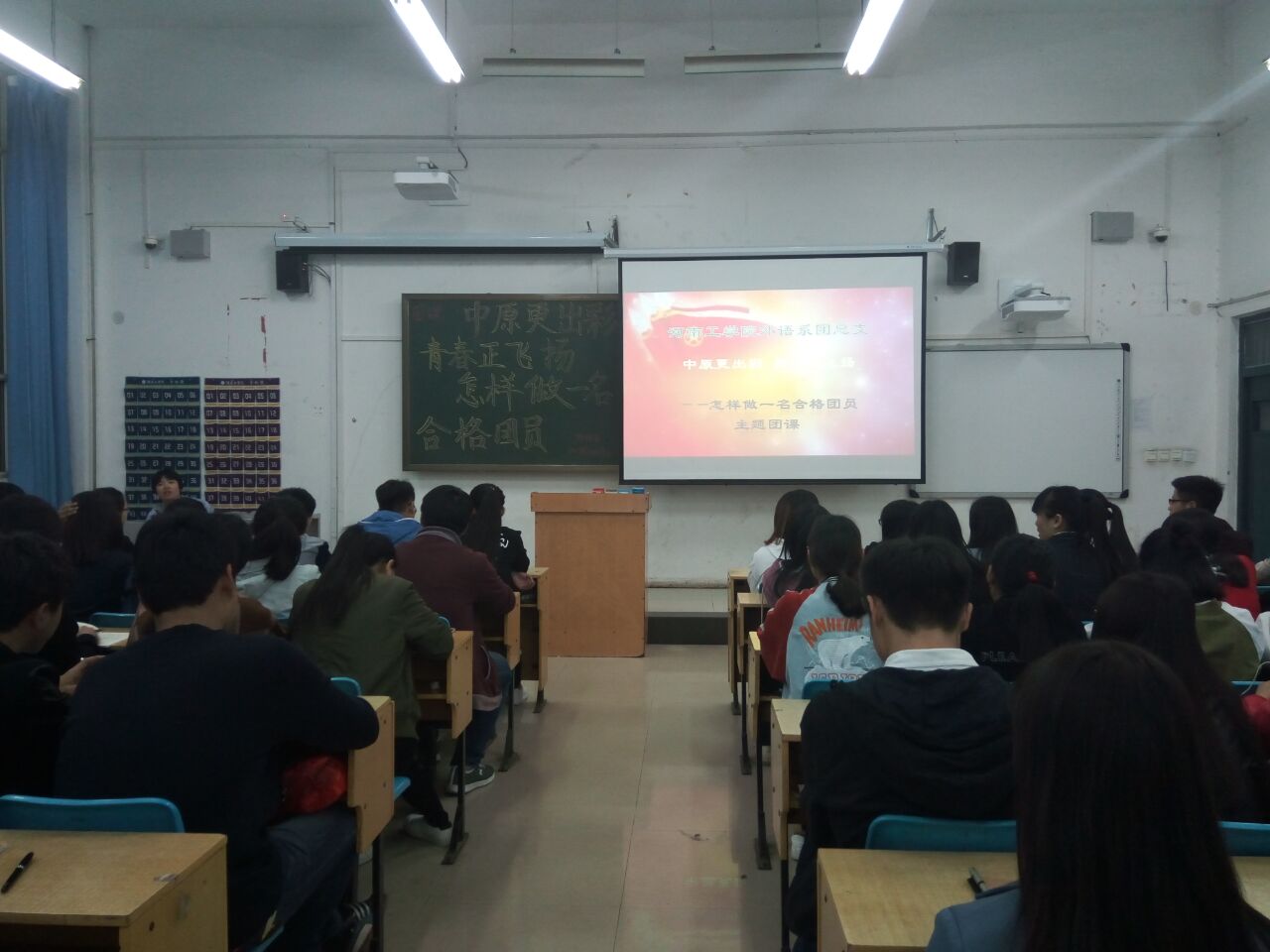 为进一步加强团员的思想政治观念,增强团员对团组织的深刻认识,切实增强团员的先进性和荣誉感,让团员更像团员,4月19日晚,外语系在公教楼C106组织开展了以“中原更出彩、青春正飞扬——怎样做一名合格团员”为主题的团课。外语系全体团员参加此次团课活动,团课由系团总支负责人李佩珊老师主讲。