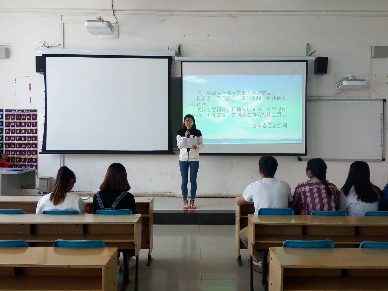 为弘扬“奉献、友爱、进步、互助”的志愿者精神,让更多的爱心青年加入志愿者的行列,4月18日,外语系于公教楼C106举办了志愿者宣誓大会。外语系主席团、全体大一志愿者、青年志愿者协会的各位部长以及各系志愿者代表参加了此次活动。