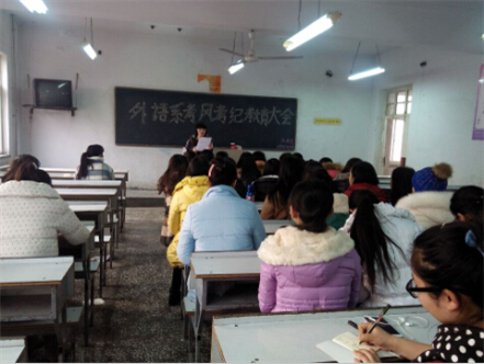 1月4日,外语系召开了考风考纪教育大会,外语系主任普昆、辅导员李佩珊出席了本次大会。