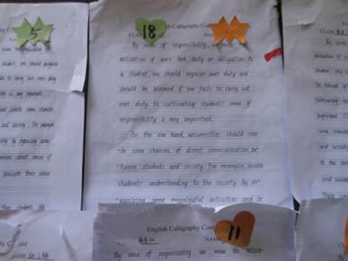 本次科技文化艺术节中,我系在全校范围内开展了英语书法大赛和英语百词竞赛。英语书法大赛于4月21日前要求各系部挑选十份优秀英语书法作品上交(A4纸,内容不限),并由公外教研室老师进行整理和评选,最后挑选出20份优秀作品参加决赛,决赛选出一等奖2名,二等奖7名,三等奖10名(一人缺考)。同学们以极大的热情和认真的态度参与了这次活动,初赛参赛作品127份,除一、二、三等奖作品外,另评出优秀奖20名。英语百词竞赛以“Learn English, Speak English, Use English”为主题,巩固学生现有词汇量,扩充学生词汇量,调动同学自觉参与,拓展学生视野,激发学生学习英语的兴趣,进一步提高学生的综合素质,促进学生和谐发展。同时通过此次活动也为配合英语校园文化节进一步营造校园英语的学习氛围。本次活动评出一等奖2名,二等奖6名,三等奖10名。