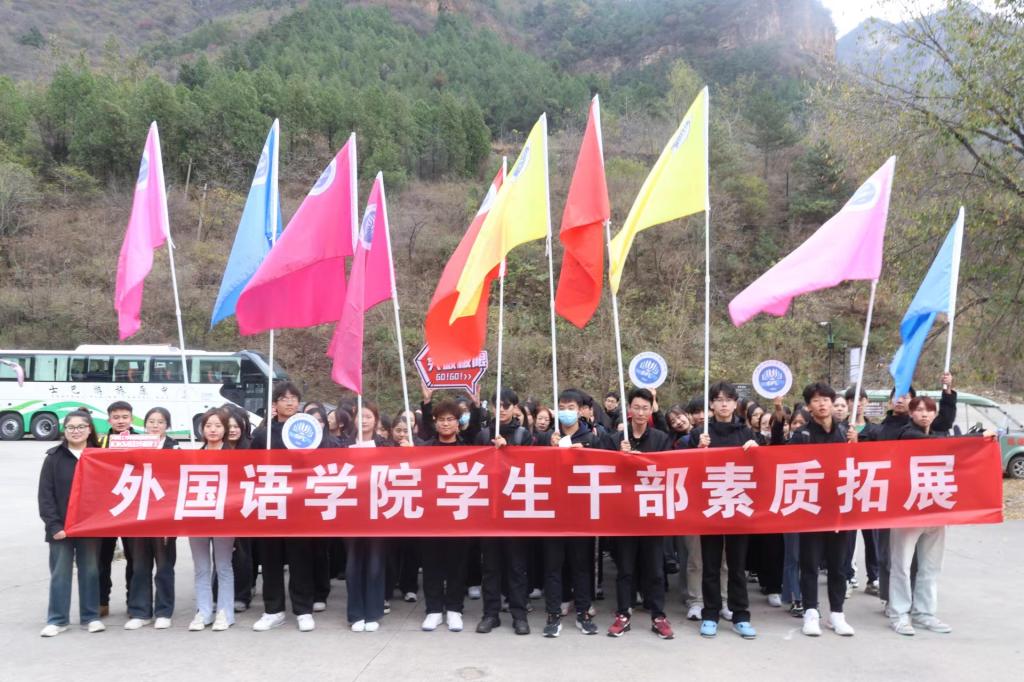 自古逢秋悲寂寥,我言秋日胜春朝。为进一步提高学院学生干部的身心素质,增强团队凝聚力和向心力,培养学生干部不怕困难、团结拼搏、合作共赢的团队协作精神,外国语学院于11月4日——11月5日组织97名学生干部奔赴南太行开展素质拓展活动。希望通过此次活动让学生干部们从秋天的能量中探索生命力,提升胜任力,重拾出发的力量。