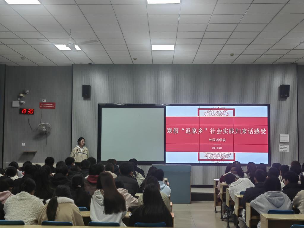 3月19日,外国语学院团委在教一B106举办了2024年寒假“返家乡”社会实践归来话感受报告会。此次活动旨在展示学生们在寒假期间“返家乡”社会实践的成果,分享他们的实践经验和感受。