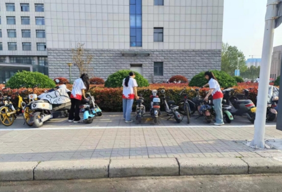 在此期间,学生党员主动组织学习小组,帮助同学们攻克学习难题,提高学习成绩;积极关注同学们的生活需求,为有困难的同学提供帮助。她们还带头参与校园环境整治,分批次在创新楼及周边,包括临近环路,引导师生走人行道,劝阻校园吸烟、乱扔垃圾、车辆乱停摆放、大声喧哗等不文明行为。课间,她们整齐有序地摆放乱停放的共享单车,捡拾树叶、纸屑等垃圾,引导同学们有秩序地上下电梯,不拥挤、不推搡,展现出高度的热情和责任心。