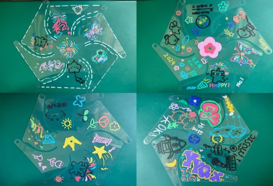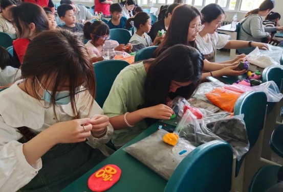 活动当天,华恩社区的小朋友们在家长以及社区工作人员的陪同下,兴高采烈地来到河南工学院校园,参与到各项活动中。在手工制作区域,小朋友们发挥自己的想象力和创造力,认真地做起手工。他们用彩纸、剪刀等工具,制作出了一个个形态各异、精致可爱的手工艺品。画风车的环节更是充满了童趣。小朋友们拿起画笔,在洁白的风车上绘制出自己心中的美好图案,五彩斑斓的风车在微风中转动,仿佛也在诉说着孩子们的快乐。剪纸活动同样吸引了众多小朋友的参与。他们在志愿者的耐心指导下,小心翼翼地剪出各种形状,体验着传统艺术的魅力,同时也在这个过程中学习到了相关的英语词汇。捏黏土活动现场,小朋友们兴致勃勃地将黏土揉捏成各种奇妙的造型,有可爱的小动物、美丽的花朵等,欢声笑语不断。