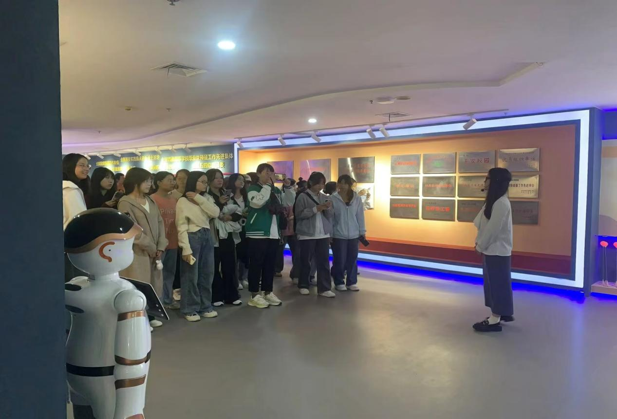 踏入校史馆,同学们瞬间被馆内庄重、厚重的氛围所环绕。校史馆以丰富详实的史料、图文并茂的展板以及诸多珍贵实物,全方位、多维度地展现了学校自创立以来的峥嵘岁月与光辉历程。在讲解员的细致解说下,新生们仿若搭乘“时光列车”,穿梭回往昔。一幅幅泛黄的老照片,见证学校初创时的简陋与质朴;一份份陈旧的教案、教材,诉说着先辈教师们严谨治学、默默耕耘的故事;一座座奖杯、奖状、证书,彰显学校在学术科研、学科竞赛、教学成果诸多领域斩获的斐然佳绩,引得同学们不时发出阵阵赞叹。参观过程并非一味的聆听讲解,其间还穿插了互动答疑环节。新生们踊跃提问,围绕学校历史细节、专业发展脉络、杰出校友事迹等方面积极求解,讲解员均给予耐心解答,现场气氛热烈活跃。