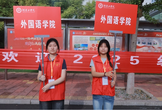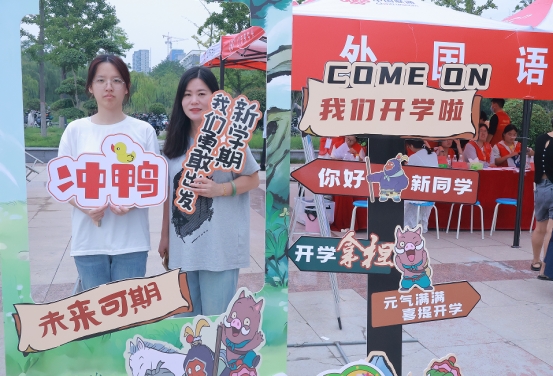 迎新期间,外国语学院在学校迎新主站点与宿舍楼周边精心布置,处处洋溢着热烈温馨的氛围。学院门口悬挂的条幅和新设计的迎新展板,既展现外语学科特色,也传递着对新生的殷切期待;新生报到处设置“萌新打卡点”,准备了定制小风扇、手机支架、校园地图、心理健康手册等迎新礼包,志愿者们为每一位到来的新生送上大礼包,让初入校园的新生瞬间感受到“外院大家庭”的温暖。