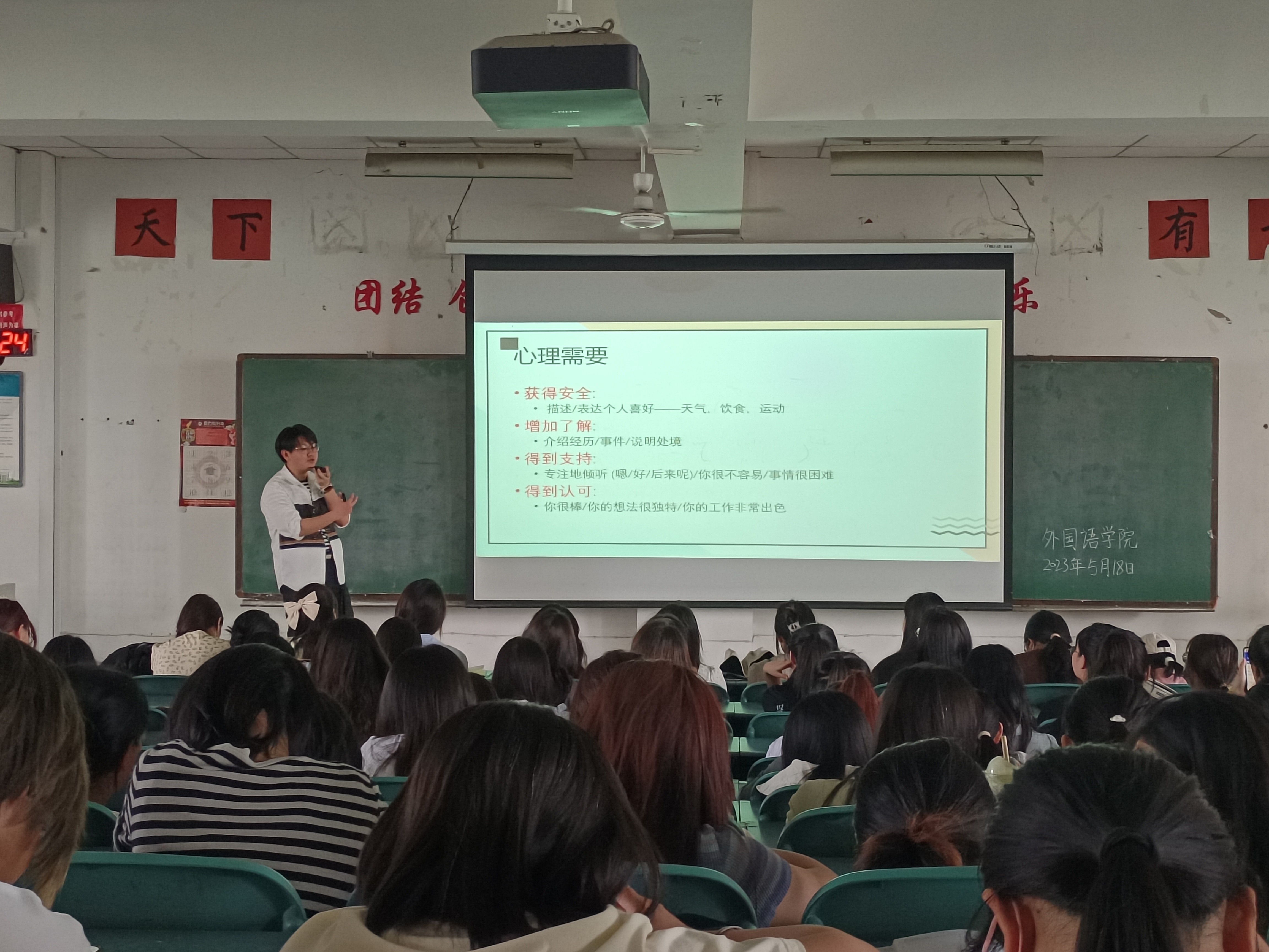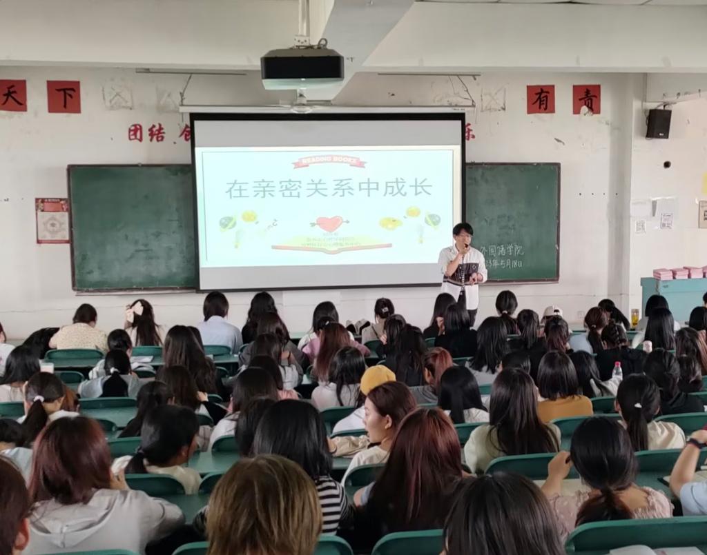 此次讲座是学院5月份心理健康月系列活动的首场,主题鲜明、适应学生身心发展需要,加强了大学生情感观念引导和爱情意识教育,有助于大学生深入了解恋爱的本质和内涵,更好地完善自我、发展自我、善待自己和他人。(外国语学院学工办 文/图)