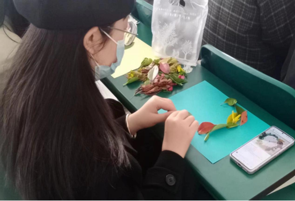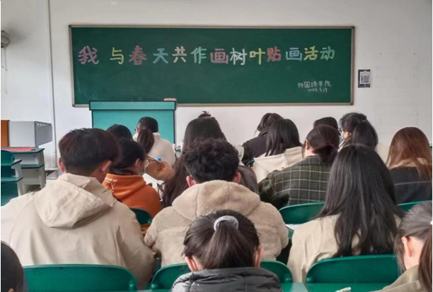 阳春三月,花香四溢。在这春暖花开的时节,为进一步丰富大学生的校园文化生活,提高同学们的动手能力和实践能力,培养大学生发现美、创造美、热爱美的能力,我院于2023年3月19日在教七214开展“我与春天共作画”——树叶贴画活动。