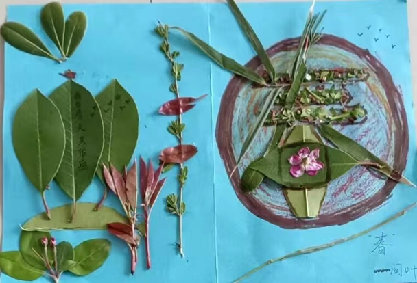 活动中,同学们利用在校园里捡来的树叶、树枝、掉落的花瓣,通过拼接、粘贴等方式,创作出一幅幅精美的作品,用双手和智慧留住了春日的绚烂。他们充分发挥想象,让智慧与审美碰撞,让创意与灵感迸发,有的与国风元素相结合,体现出对中国传统文化的热爱与发扬;有的与舞者相结合,美妙灵动,意趣盎然;还有同学用树叶制作了中国地图、大雁塔等,展现了对祖国大好河山的无限热爱。一片片树叶经过设计、修剪形成不同风格的作品,成为了一道道别样的“风景”。每一件作品都蕴含了同学们丰富的想象力和创造力,体现出大学生对美好生活的向往和憧憬。