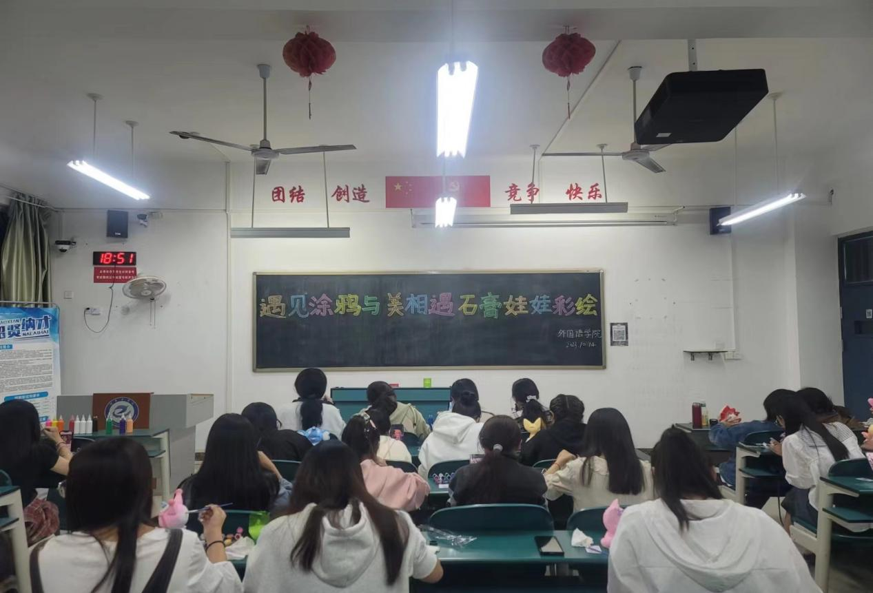 为促进同学们养成自尊自信、乐观向上的积极心态,营造良好的心理健康氛围,外国语学院于10月16日晚6点在教七举办“遇见涂鸦,与美相遇”——石膏娃娃彩绘活动。