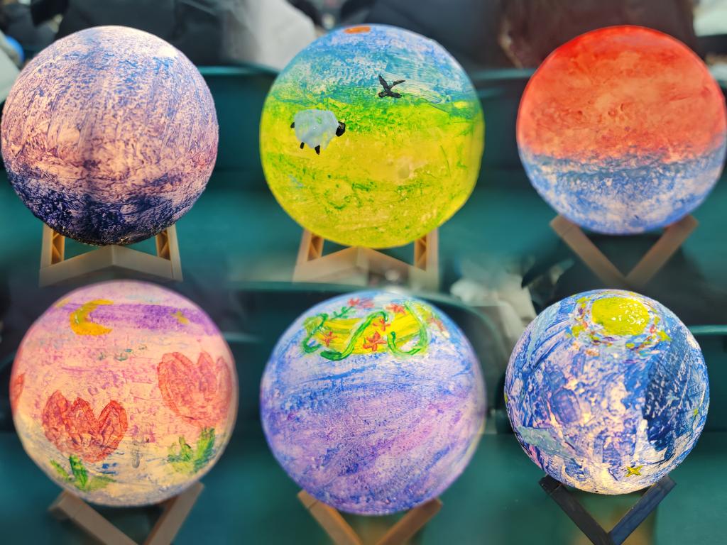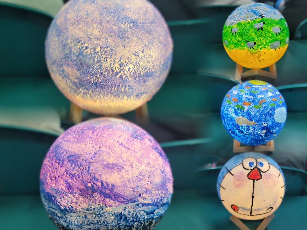 次活动吸引了许多同学前来参与,他们月球灯为载体,展现了自己的创意和艺术才华。在轻松愉悦的氛围中,大家五彩缤纷的颜料,充分发挥自己天马行空的想象力。经过调色、构图、涂鸦、点缀,同学们将探索宇宙的好奇心尽数挥洒,涂绘出一盏盏各具特色的月球灯:繁星璀璨的苍穹,有可爱呆萌的动物,还有姹紫嫣红的花朵……通电后,奇妙的色彩与温柔的光束相撞,营造出满满的梦幻感。现场气氛热烈,欢声笑语不断。活动结束后,同学们纷纷展示自己的作品,并与月球灯合影留念。