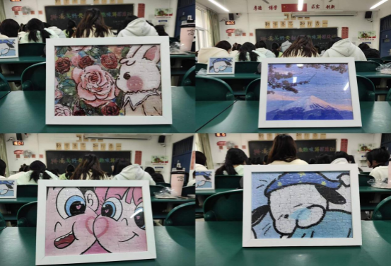 本次活动因其创新性而深受同学们的喜爱,共有40名同学积极报名参加。活动过程中,同学们充分发挥自己的聪明才智,按照样品图仔细比对拼图碎片,在观察、寻找、挑选、拼装的不懈努力下,最终将一块块儿碎片拼成一幅幅完整的图画。大家用专注创作各自的作品,以独特的方式表达对生活的热爱。拼图图案多样,看似简单的图案却由许多个颜色和形状相似但又有细微差别的小模块组成。同学们在不断调整拼图模型的过程中,感受其中的乐趣。