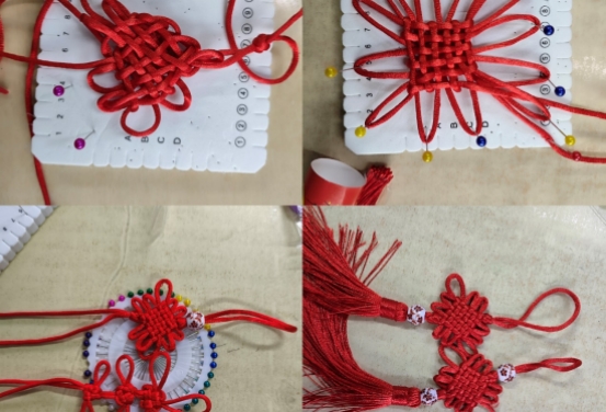 一根根普通丝线逐渐在同学们的巧手下化为精美的中国结,它们或小巧精致,或大气典雅,每一个都蕴含着独特的魅力与情感寄托。这些中国结不仅仅是手工艺品,更象征着心灵的联结、内心的平和与希望的凝聚,承载着中华传统文化中对美好生活向往的深厚内涵,也寓意着在心理健康之路上彼此支持与陪伴。