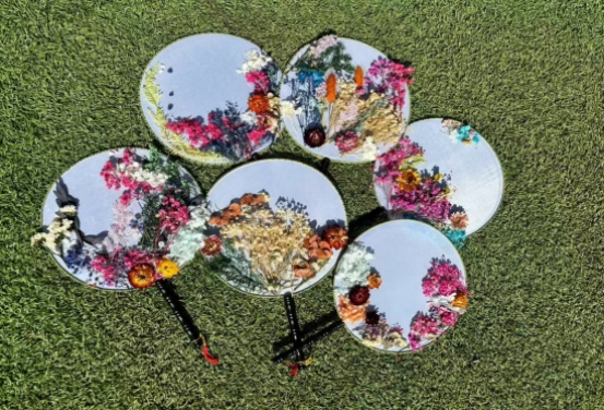 花漾时光,定格永恒。为提高同学们的心理健康水平,增强创新思维及艺术审美能力,李佩珊辅导员工作室于3月22日上午在科苑操场举办永生花团扇制作活动。