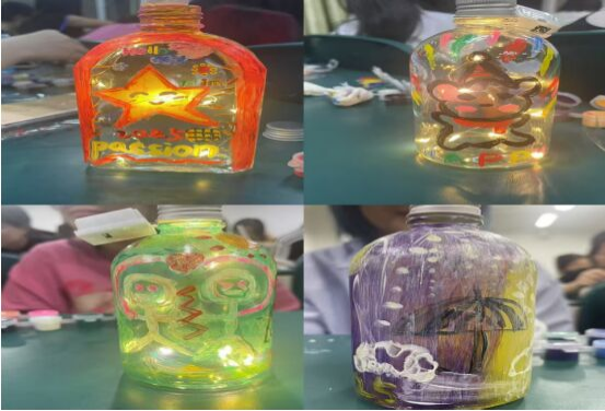 瓶中藏万象,灯里绽心花。为缓解同学们的焦虑情绪,激发同学们的创新思维和艺术审美能力,促进青年学生的心理健康发展,李佩珊辅导员工作室于4月29日在教七举办雨水瓶灯活动。