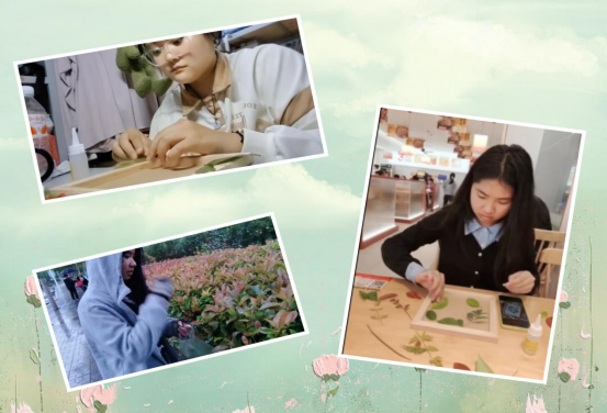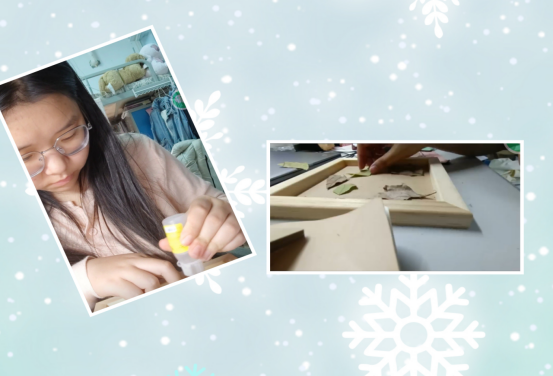 活动期间,同学们三三两两分散在校园各处:有人在清晨的林荫道捡拾带着露珠的梧桐叶,有人在午后的草坪收集金黄的银杏叶,还有人在傍晚的花园寻觅色彩浓郁的落花。大家随时记录自然之美,再带回宿舍或教室,利用碎片时间完成相框制作。有的同学将银杏叶层层叠叠粘贴,模拟出 “秋日绽放的花朵”;有的以梧桐叶为基底,用马克笔勾勒出笑脸与星辰;还有同学搭配不同颜色的树叶,拼出各种图案,让每一份创作都成为情绪的独特载体。这些凝聚着创意与巧思的相框,被工作人员妥善收集,后续还会在工作室进行展示,让这份来自自然与手工的美好被更多人看见。