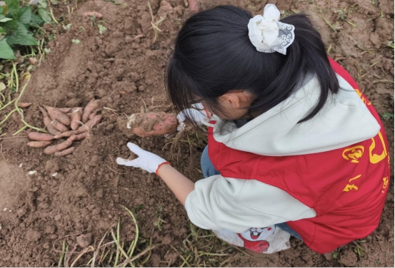 劳作间隙,专属心理健康互动环节让活动更具温度。工作人员组织学生分享劳作中的小发现、小成就感,通过“田间协作小任务”引导大家分工配合、彼此支持,在轻松的氛围中释放学业压力。亲手挖出饱满红薯的喜悦、团队协作攻克难题的成就感,成为最天然的“心理疗愈剂”,让学生在亲近自然、动手实践中放松身心,收获积极情绪。