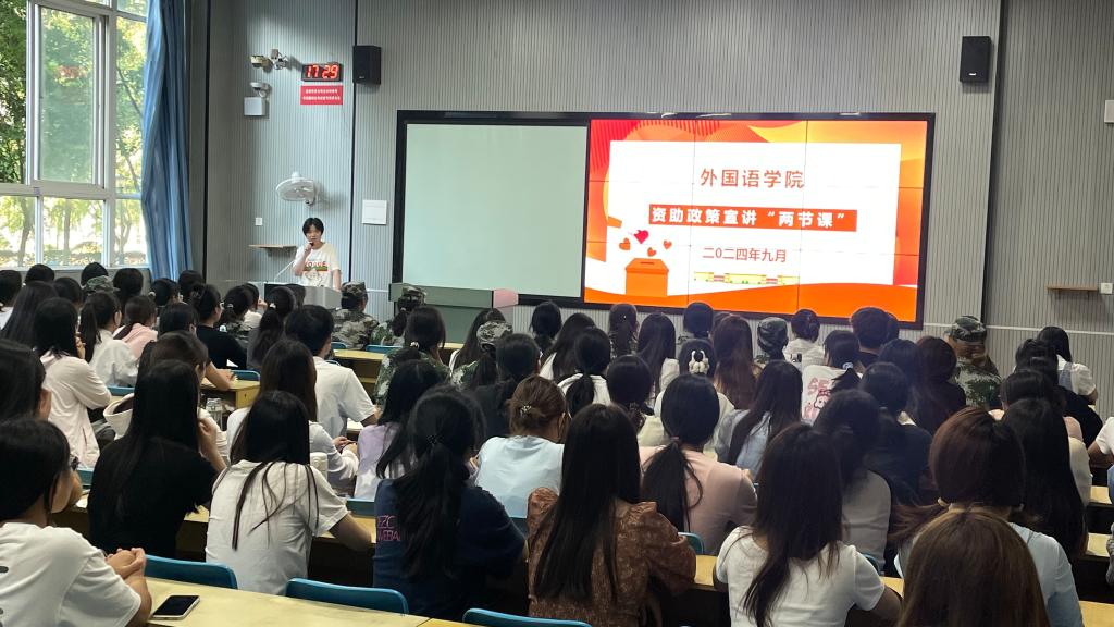 此次外国语学院资助政策“两节课”活动的开展,为同学们送去了及时且重要的政策信息,尤其让新生在入学之初就感受到了学院的关怀与温暖。相信在资助政策的助力下,家庭经济困难的学生们将更加坚定地追逐自己的梦想,在大学的舞台上绽放出属于自己的光彩。(外国语学院学工办 文/图)