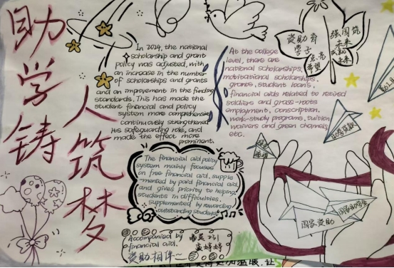 “冬日送暖手抄报”活动中,学生们发挥创意,各展才华。一幅幅精美的手抄报色彩绚丽、主题突出。有的通过描绘温馨的冬日场景,传递人与人之间的关爱;有的详细介绍国家资助政策,表达对政策的感恩之情。这些手抄报不仅装饰了校园,还进一步宣传了资助政策,弘扬了积极向上的正能量。
