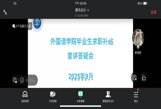 此次求职补贴宣讲答疑会,让毕业生清晰掌握了一次性求职补贴的申请要点、条件及流程,有效消除了同学们在政策理解和申请操作上的困惑。下一步,外国语学院将持续跟进毕业生求职补贴申请进度,及时协助解决后续出现的问题,同时不断优化就业服务举措,全力助力每一位毕业生平稳有序完成毕业与求职的过渡衔接。(外国语学院学工办 文/图)