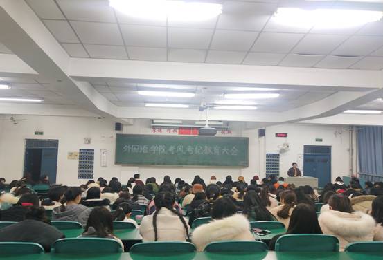 此次大会,通过强调考风考纪,对同学们端正考试态度,树立诚信考试作风发挥了积极作用,增强了同学们的诚信意识和纪律意识,并体现了我院重视考风考纪及诚信教育的正确理念。(外国语学院学工办 文/图)