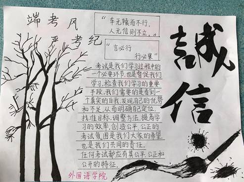 在考风考纪教育活动中,我院学生明确了考试的真正目的,端正了考试态度,立志在公平的环境中从点滴做起,养成良好的考试纪律,树立良好的学风,确保考试质量,提高成绩认可度,为维护社会的公平正义出一份力。(外国语学院学工办 文/图)