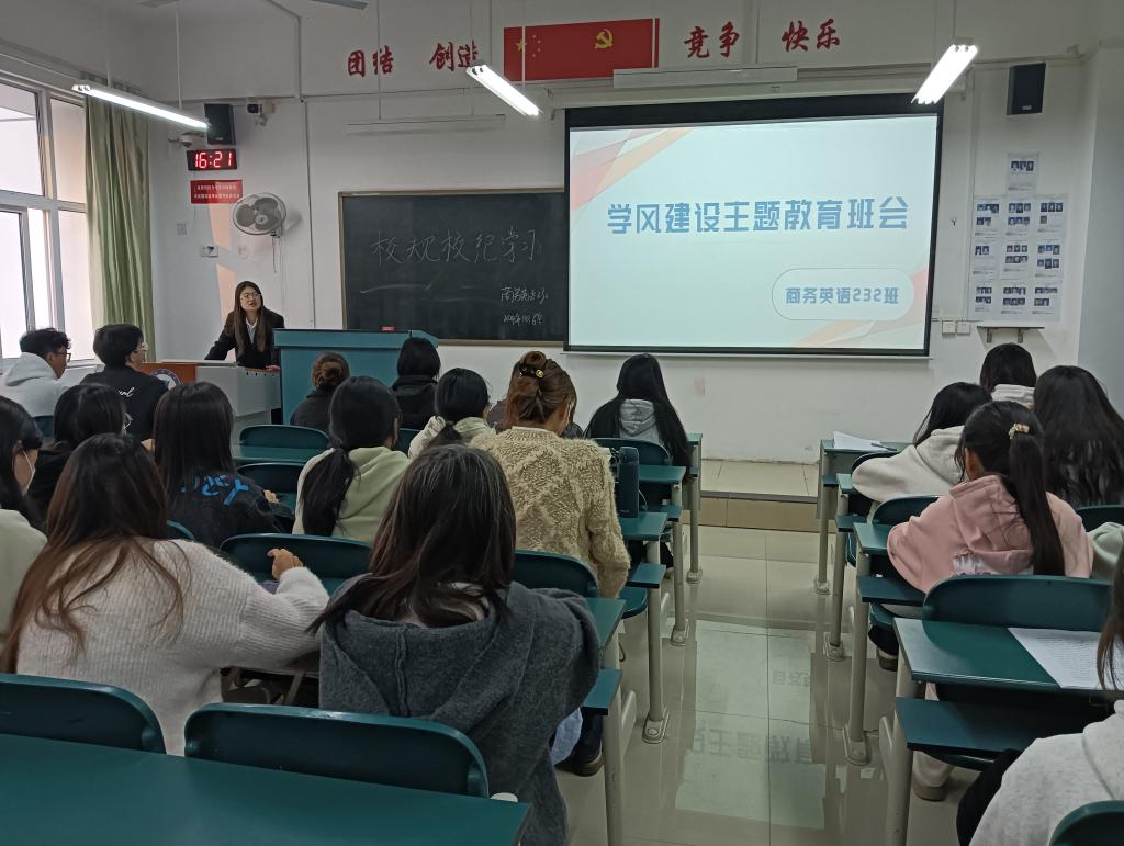 近日,外国语学院积极响应学校学风建设号召,各班级组织开展了一系列丰富多彩的学风建设主题班会。此次主题班会旨在进一步加强学院的学风建设,引导学生树立正确的学习态度,明确学习目标,营造积极向上、勤奋好学的学习氛围。