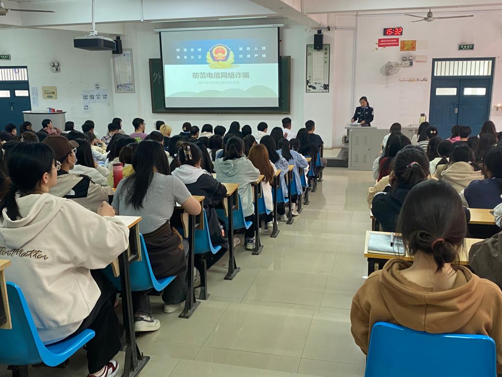 在讲座中,郑警官从什么是电信诈骗、电信诈骗的特点及防诈骗的方法等多个方面展开介绍,深度剖析了电信诈骗的受害群体,以及常见的电信诈骗形式,并结合大学生群体特点,重点介绍了刷单返利、“杀猪盘”、冒充电商物流客服、熟人、领导、“公检法”、虚假投资理财、虚假购物、非法校园贷和网络游戏虚假交易等典型的电信网络诈骗方式,告诫同学们在日常生活中要加强网络安全教育,树立正确的网络安全观。