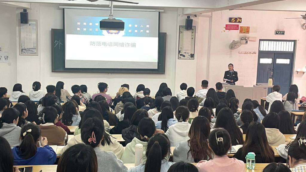 郑警官还结合具体案例,提醒同学们牢固树立校园安全意识,抵制非法旅游机构的诱惑,自觉加强安全知识学习,不断提高自我保护意识和安全防范技能,并叮嘱同学们在日常学习生活中要调整好自己的心态,遇到困难更要及时沟通。最后,郑警官结合日常工作经验,总结了一系列防诈骗应对措施,希望同学们牢记在心,实践于行。