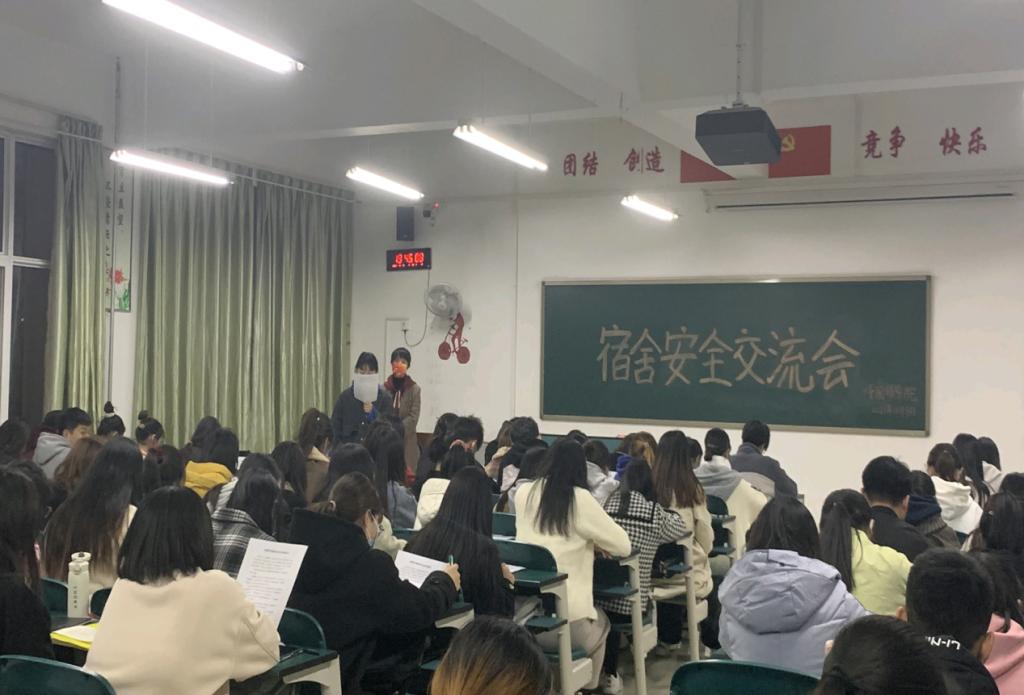 11月8日,外国语学院在教7#422开展宿舍安全交流会,全院宿舍长及院学生会生活权益部全体成员参加交流会,会议由院学工办主任李佩珊主持。