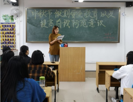 会上,田老师就即将到来的中秋节假期对学生的安全问题作出强调。她指出,各班要高度重视,增强忧患意识和责任意识,贯彻落实“安全第一、预防为主”的方针,切实做好假期学生安全各项工作,同时假期期间要做好学生宿舍安全管理,积极维护校园和谐稳定。最后,她要求各班认真做好假期学生去向统计工作,请假要及时告知老师与家长,确保班主任及辅导员了解学生的去向动态。