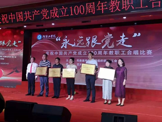 为庆祝中国共产党成立100周年,河南工学院于624日在创新楼二楼报告厅举办“永远跟党走”教职工合唱比赛。外国语学院分工会40多名教职工参加比赛,经过激励角逐最终荣获比赛三等奖。