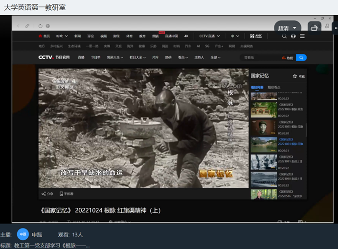 (教工第一党支部观看《国家记忆》:《根脉——红旗渠精神》)