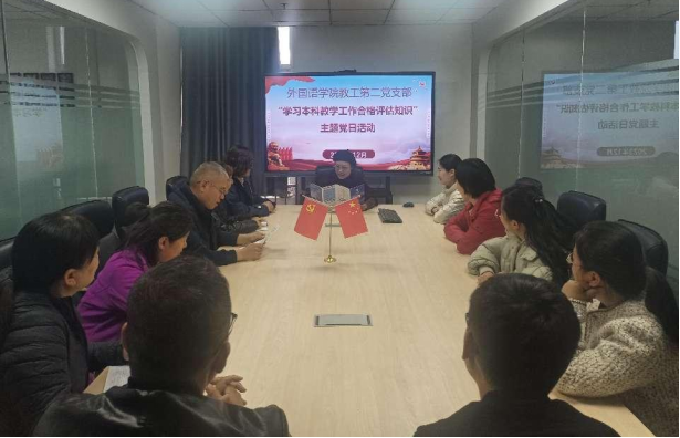 为了更好地激励支部党员以更加积极的态度为学校本科教学工作合格评估做出更大的贡献,外国语学院教工第二党支部于12月28日在创新楼1008开展主题党日活动。