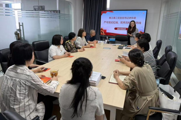为进一步强化党员纪律意识,外国语学院教工第二党支部于6月27日开展了“严守党纪红线,筑牢高校廉洁防线”专题党课,支部书记韩慧围绕高校廉洁建设的重要性、风险点及实践路径授课。