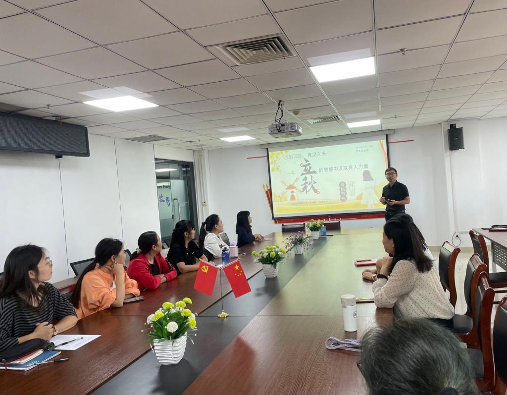 为感悟传统智慧,增强文化自信,深化育人认知,遵循教育规律,激发担当作为,规划新学期工作,外国语学院教工第一党支部于8月28日组织开展了“应时而动,育见未来——从‘立秋’的智慧中汲取育人力量”的主题党日活动。活动坚持以学生为本、以党建引领、以行动落地的原则,旨在提升教师育人本领,推动党建与课程、思政教育、校园文化建设的协同发展。