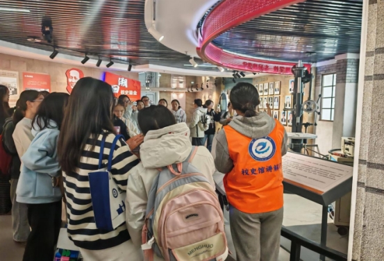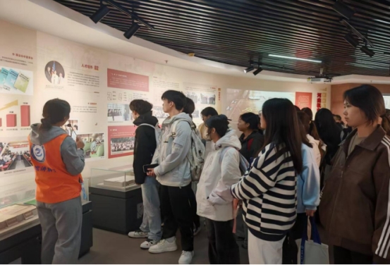 活动伊始,同学们缓步走入校史馆。这里不再是单向的知识输出地,更是一个可与历史无声对话的空间。指尖掠过仿古的墙砖,同学们的目光停驻于一张张毕业照上青涩的面庞,空气中弥漫着一种庄重而亲切的气息。同学们在各个展柜前驻足凝视,深切感受着学校与时代同频共振的奋斗历程。