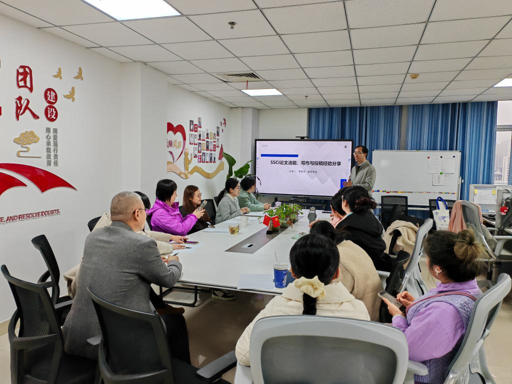 活动首先邀请管理学院教师李鹏龙博士做SSCI论文选题、写作与投稿的主题讲座。李博士分享了自身英文学术论文写作与发表的经验,给予党员教师们细致耐心的科研指导。