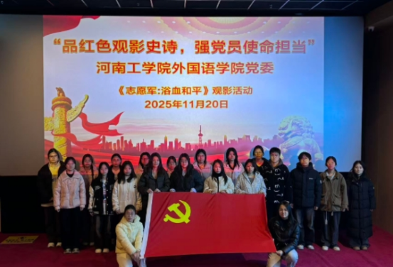“以史为鉴可知兴替,以魂为灯可明前路。”为厚植学生党员的红色基因,强化责任担当意识,引导学生党员在历史回望中坚定前行方向,外国语学院学生党支部于2025年11月20日组织学生党员集中观看红色电影《志愿军:浴血和平》,开展“品红色观影史诗,强党员使命担当”主题党日活动。
