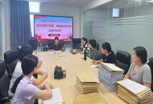 为进一步凝聚党员力量、激发奋斗热情,引导党员以实干姿态推动工作开新局,8月28日下午,外国语学院教工第二党支部于创新楼1007开展“锐意进取开新局,砥砺奋进再出发”主题党日活动。