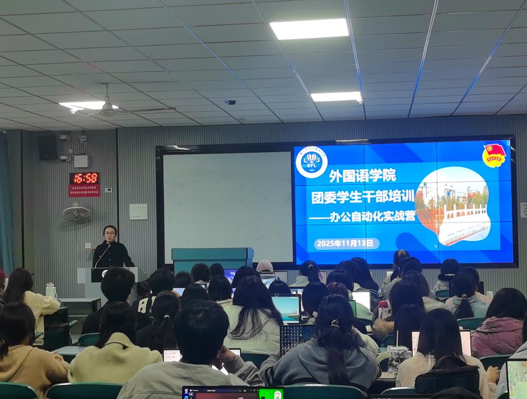 为进一步提升学生干部的办公自动化应用水平,强化数字技能在学生工作中的实践应用,切实提高学生工作效率与质量,外国语学院团委于2025年11月13日启动“办公自动化实战营”。全院各级学生组织、班级学生干部及骨干成员积极报名参与,在系统学习与实战演练中解锁办公新技能,为今后高效开展学生工作注入数字动力。外国语学院学生党支部宣传委员曹晓彤担任本次实战营主讲教师。
