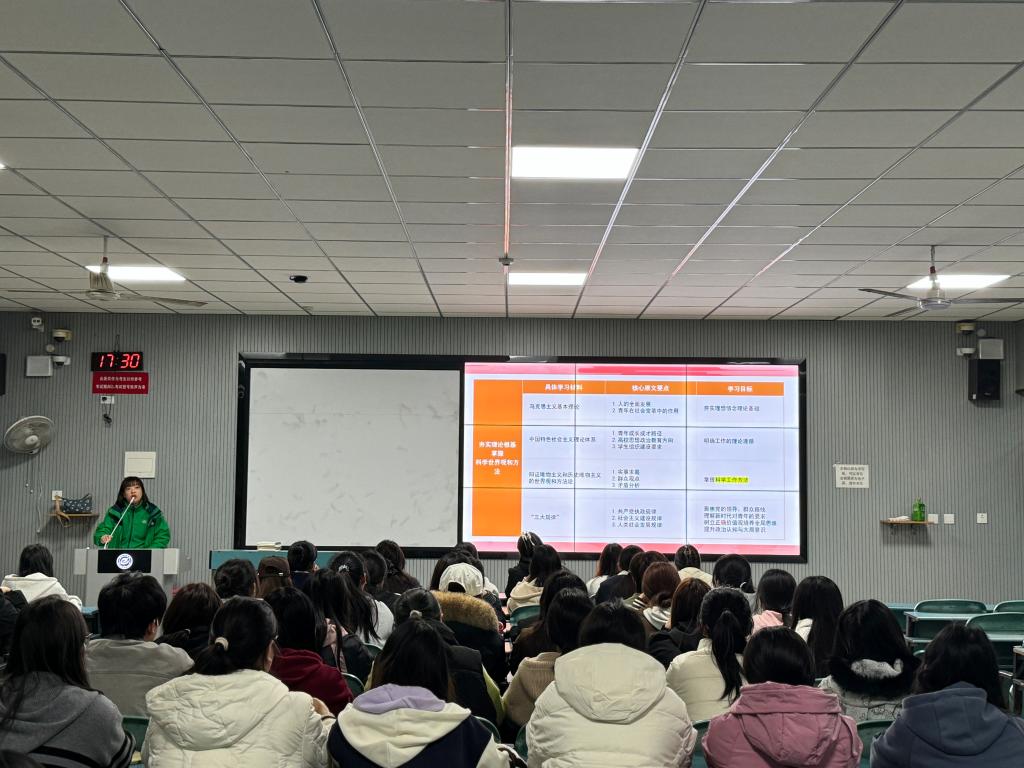 为进一步加强学生干部队伍建设,提升学生干部的思想政治素养与综合履职能力,2025年11月14日下午,外国语学院团委在教一A202开展学生干部思想政治教育专题培训。学院全体学生干部参与培训,在系统学习与深度交流中锤炼过硬作风、凝聚奋进力量。本次培训由学院党委副书记靳静波主讲。