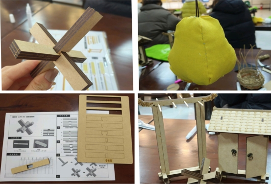在制作榫卯三件套的过程中,学员们认真聆听老师的讲解,学习了中国古代木构建筑中的榫卯结构原理。他们亲手操作,将一块块木料巧妙地拼接在一起,体验到了传统工艺中的智慧与精妙。手工造物环节则更加注重学员们的创新思维和动手能力,大家纷纷发挥想象,创作出了一件件独具特色的手工艺品。藤条编织笔筒项目则让学员们感受到了中国传统编织艺术的魅力。在老师的指导下,学员们用灵巧的双手将藤条编织成一个个精美的笔筒,既实用又美观。这一过程中,学员们不仅学会了编织技巧,更体会到了耐心与细致的重要性。