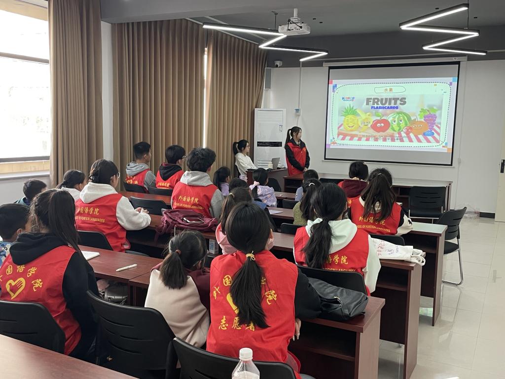 在活动现场,外国语学院的志愿者们热情地与社区的孩子们互动,通过丰富多彩的趣味英语游戏、英语儿歌等形式,将英语学习融入到快乐的氛围中。孩子们积极参与,尽情享受英语学习的乐趣。他们在游戏中学会了常用的英语单词和短语,提高了英语口语表达能力。