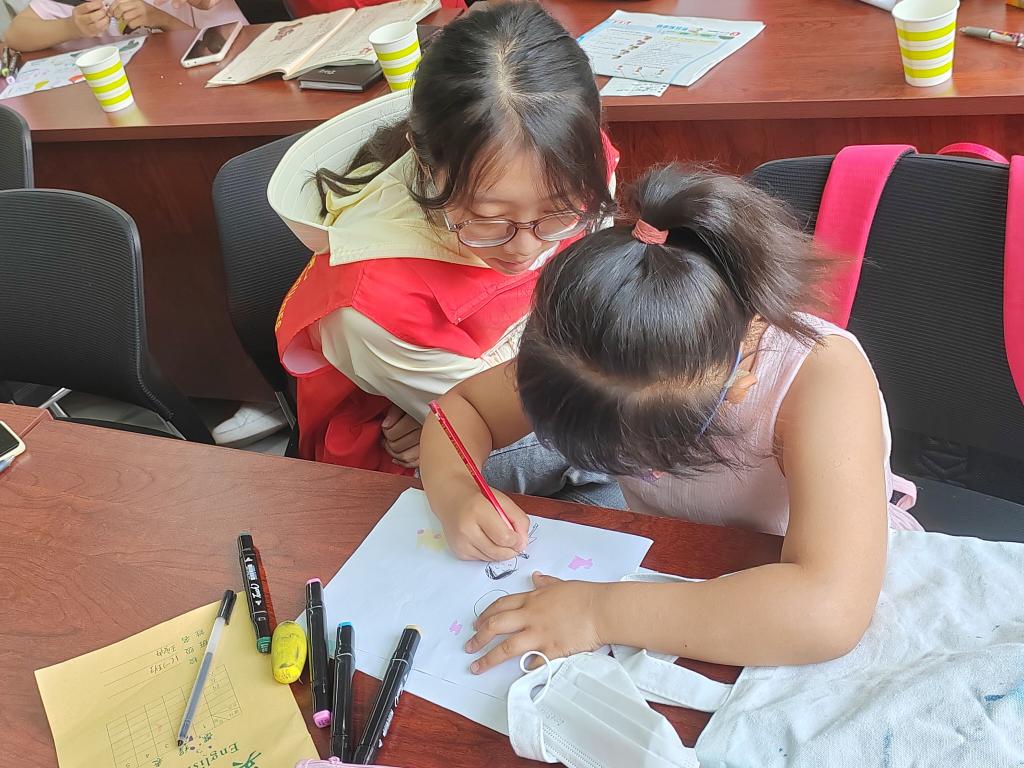 本次活动,志愿者们对小朋友们进行趣味英语一对一辅导。每个小朋友的面前都放着一张张洁白的画纸,手中紧握着一根根五颜六色的画笔。她们时而轻轻地在纸上勾勒线条,时而用力地在纸上涂抹色彩,每一笔都充满了童真与想象力。在画画的过程中,英语学习也悄然展开。