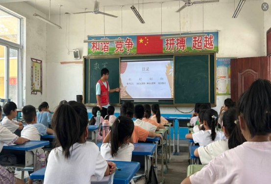 数学课堂同样精彩。支教大学生们为孩子们深入讲解了加法和乘法的运算律,包括加法交换律、结合律,乘法交换律、结合律和分配律。队员们运用实例和趣味练习,帮助孩子们理解运算律的应用,提高了他们的数学运算能力和逻辑思维能力。