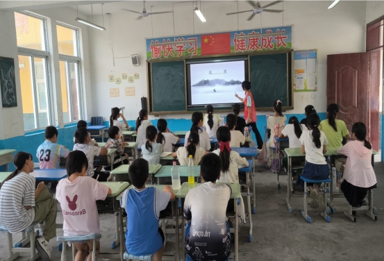 当天的课程安排丰富多样且极具意义。英语课堂上,志愿者们生动地讲解了描述动物的英文词汇和句型,通过趣味互动让孩子们轻松掌握语言知识。
