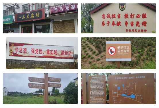 在光山县文殊乡东岳村,相同的探访工作亦在有条不紊地推进。队员们以严谨的态度,不放过任何细微之处,对公示标牌和宣传标牌的语言运用、排版设计、宣传侧重点等关键方面进行了深入的分析与全面的总结。经过深入调研,团队了解到东岳村的标牌在传播乡村文化、政策导向及建设成果方面发挥了显著作用。